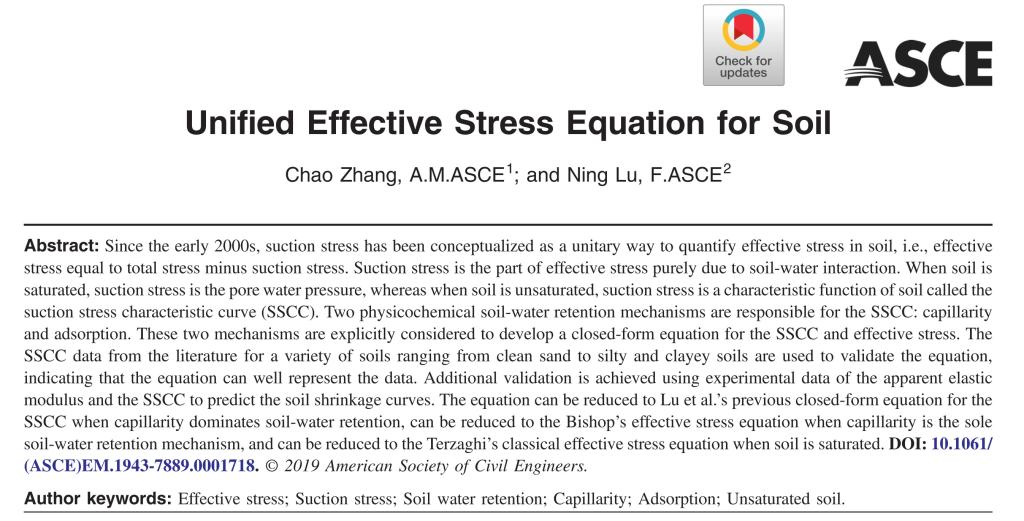 张超教授荣获美国土木工程学会(ASCE)学术论文最高奖“诺曼奖章”(Norman Medal),以表彰其论文成果《Unified Effective Stress Equation for Soil》在工程科学领域的杰出贡献。获奖成果由KISSAV