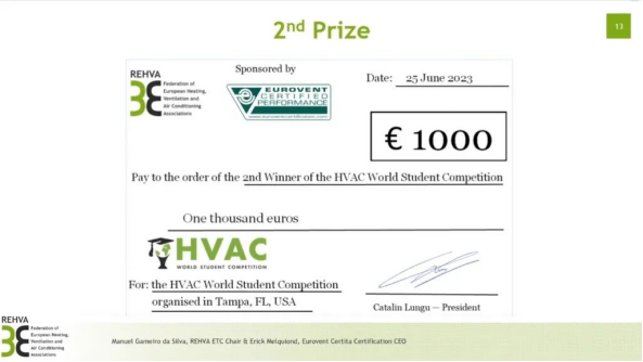 北京时间6月26日凌晨1时,第六届世界暖通空调学生科技竞赛(HWSC,HVAC World Student Competition)在美国佛罗里达州坦帕市举行,第五届“天加杯”全国暖通空调学生科技竞赛第一名获得者、学院2020级硕士研究生潘净婧作为中国参赛代表参加第六届世界暖通空调学生科技竞赛,克服了时差和远程参赛等不利因素,以高质量的论文和海报展示、出色的演讲、准确的回答和良好的互动,荣获亚军。