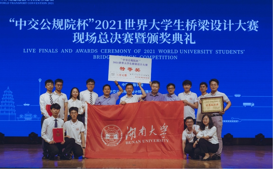 “中交公规院杯”2021世界大学生桥梁设计大赛是中国公路学会与中交公路规划设计院有限公司共同主办的国际赛事,自2017年创办至今已连续举办了四届。大赛旨在引导高等学校培养大学生的创新设计意识、综合设计能力与团队协作精神;加强学生动手能力的培养和工程实践的训练,鼓励学生针对实际需求,通过创新思维进行桥梁设计;吸引、鼓励广大学生踊跃参加课外科技实践活动,为优秀人才脱颖而出创造条件;发现并培养更多的桥梁设计专业人才,为推动世界桥梁建设进步提供更多人才储备。作为2021世界交通运输大会的重点活动之一,经过院校推荐,评审会初审,评审会终审等过程,经过专家学者的严格评审,大赛组委会从57所世界高校提交的200余件作品中遴选10项作品进入终审决赛环节。