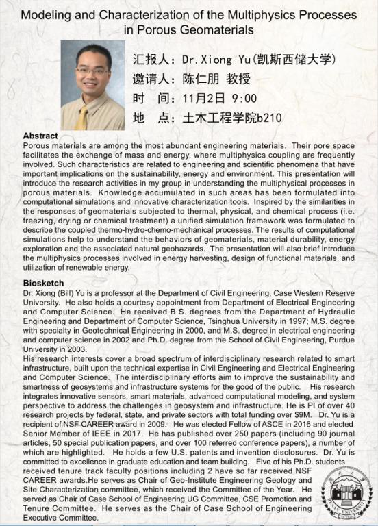 Dr.Xiong Yu: 多场耦合下岩土多孔介质材料的测试与模拟研究