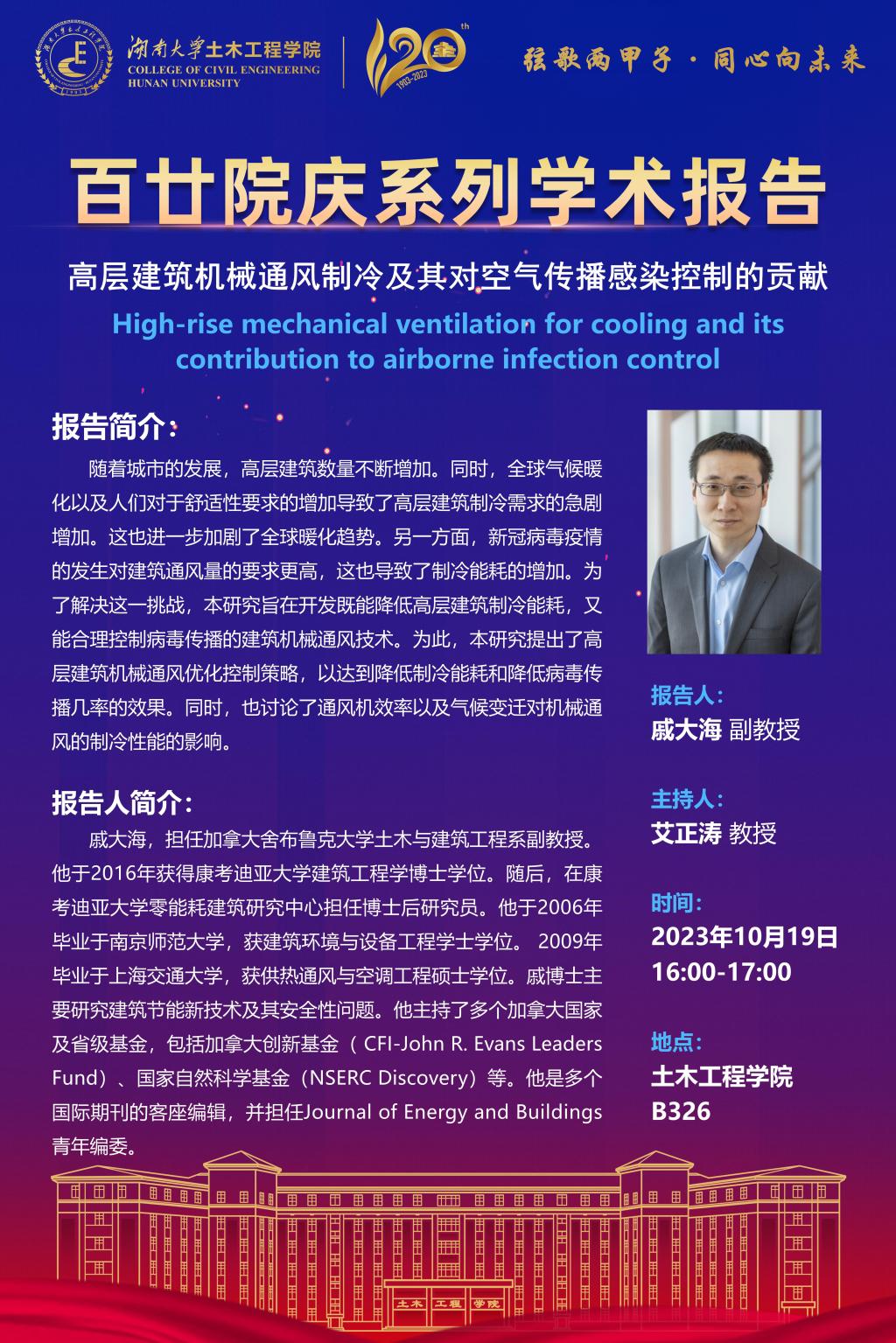 百廿院庆 学术活动|戚大海:高层建筑机械通风制冷及其对空气传播感染控制的贡献
