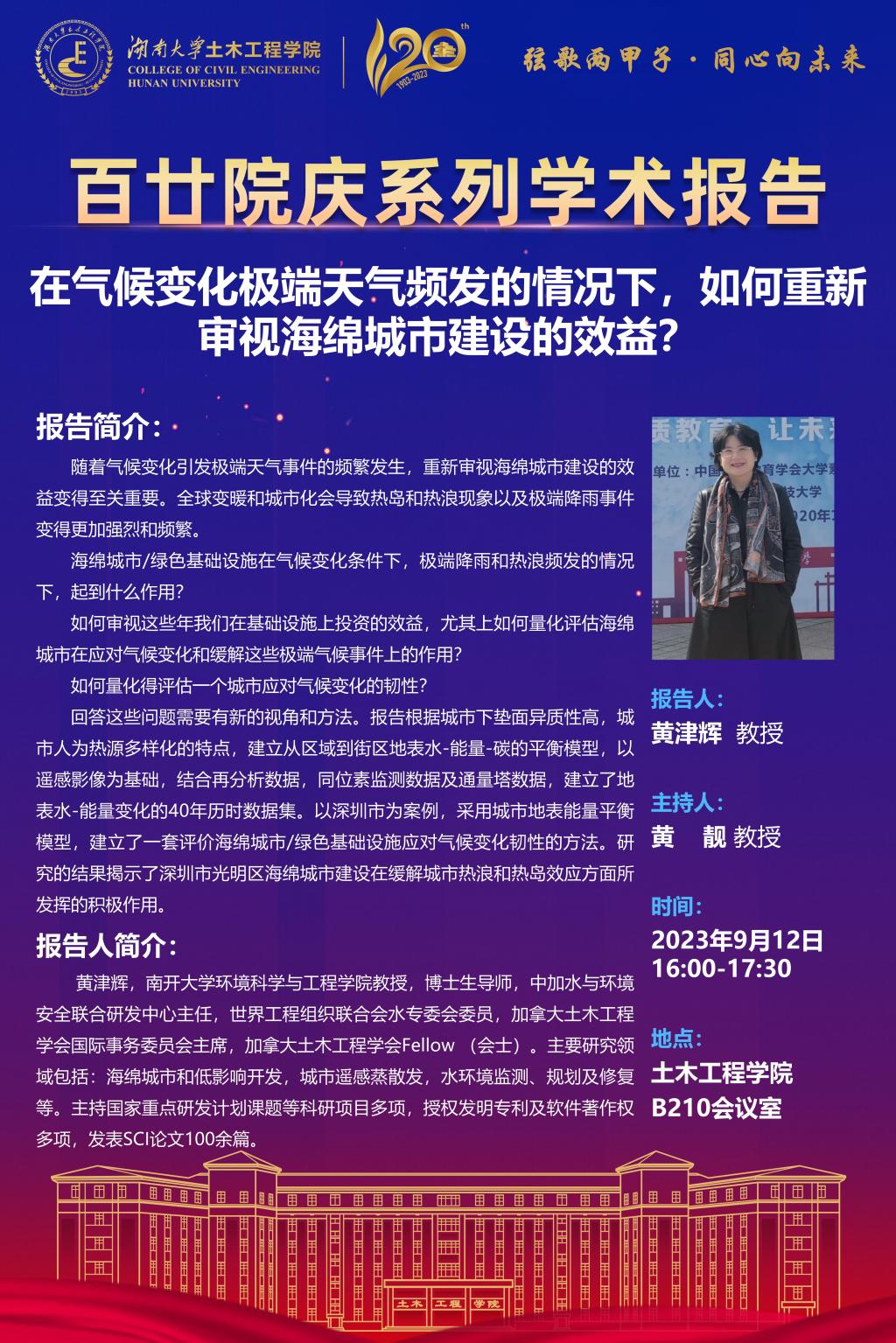 百廿院庆 学术活动|黄津辉:在气候变化极端天气频发的情况下,如何重新审视海绵城市建设的效益?