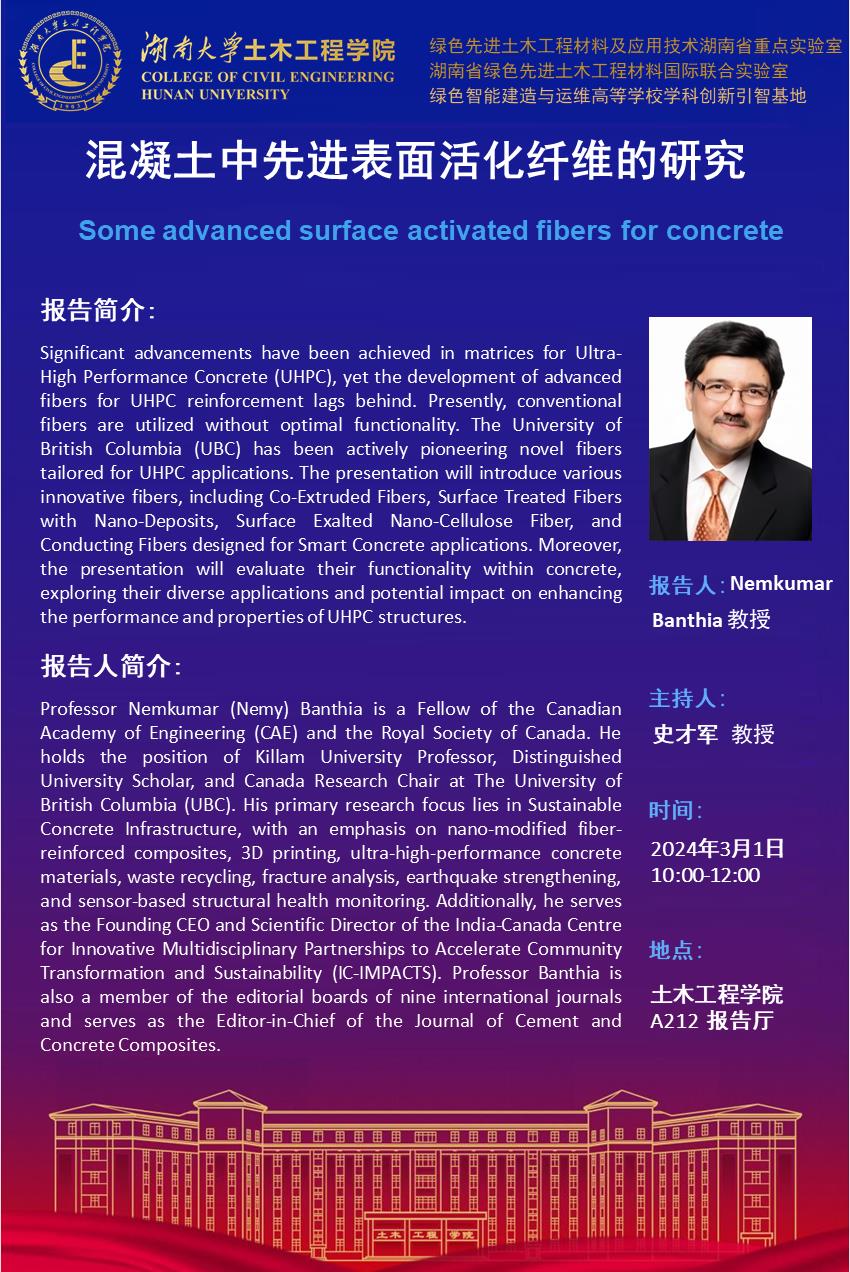 Nemkumar Banthia:混凝土中先进表面活化纤维的研究