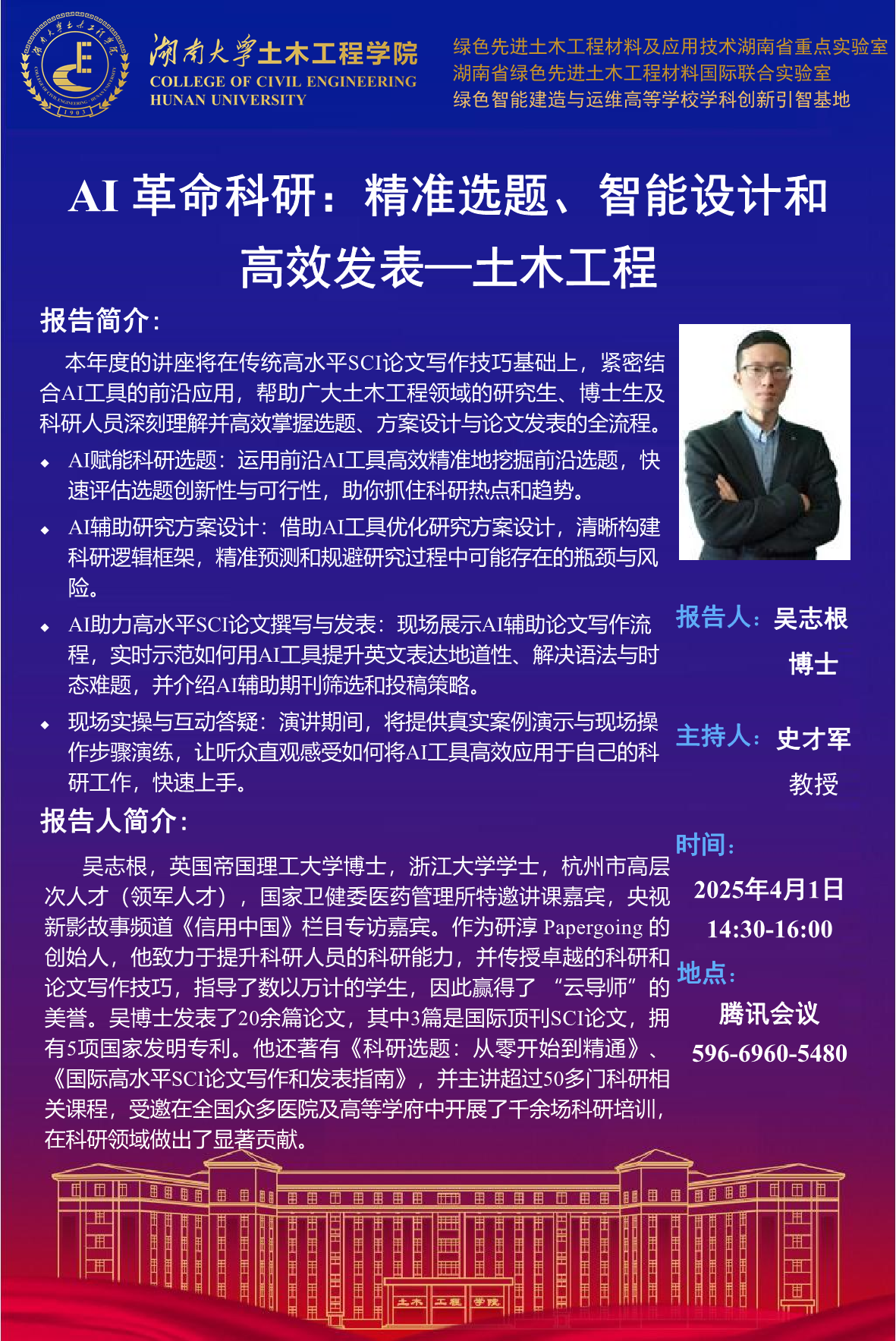 吴志根:AI 革命科研:精准选题、智能设计和高效发表—土木工程
