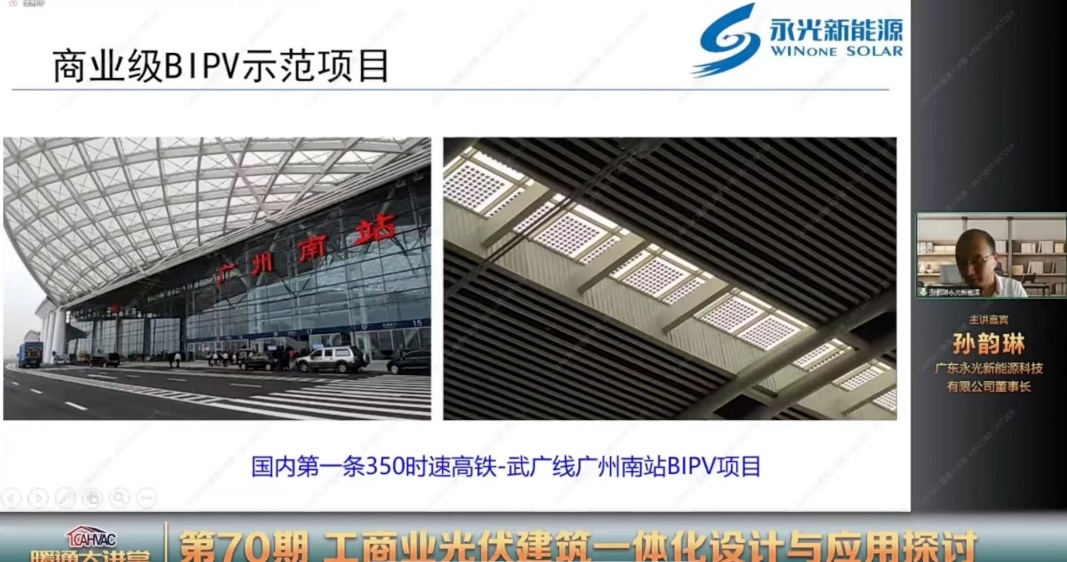 5月18日,广东永光新能源科技有限公司董事长、教授级高工孙韵琳讲授了《工商业光伏建筑一体化设计与应用探讨》公开课。孙韵琳介绍了光伏建筑一体化构架、工商业BIPV项目特点和工商业BIPV项目设计要点等内容,并指出BIPV是未来绿色建筑发展的一个重要方向,具有原地发电、原地使用、不需要长距离输电、配电费用小和舒缓高峰电力需求等优点。课后,孙韵琳就BIPV项目成本和收益等问题进行了解答。