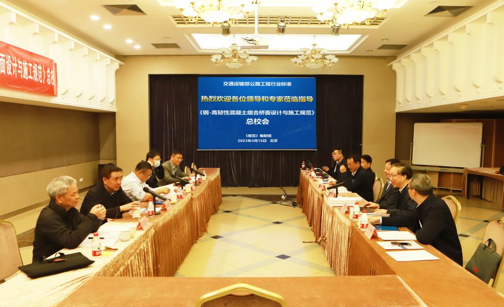 4月16日,交通运输部公路局在北京组织专家对公路工程行业标准《钢-高韧性混凝土组合桥面设计与施工规范》(以下简称《规范》)总校稿进行了审查。审查专家组由交通运输部公路科学研究所院长张劲泉、交通运输部公路局原局长李彦武、中交公路规划设计院有限公司常务副总工程师袁洪、中交一公局集团有限公司原副总工程师田克平、人民交通出版社股份有限公司公路出版中心主任吴有铭组成。