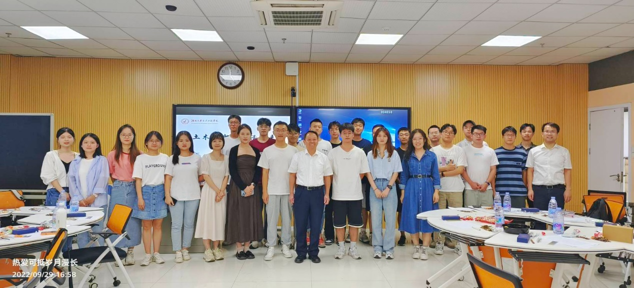 2022级硕士结构三班“土木有我·共话未来”主题班会在南校区研楼B304举办。校长段献忠、学院党委书记彭晋卿参加班会,并与同学们亲切交流。