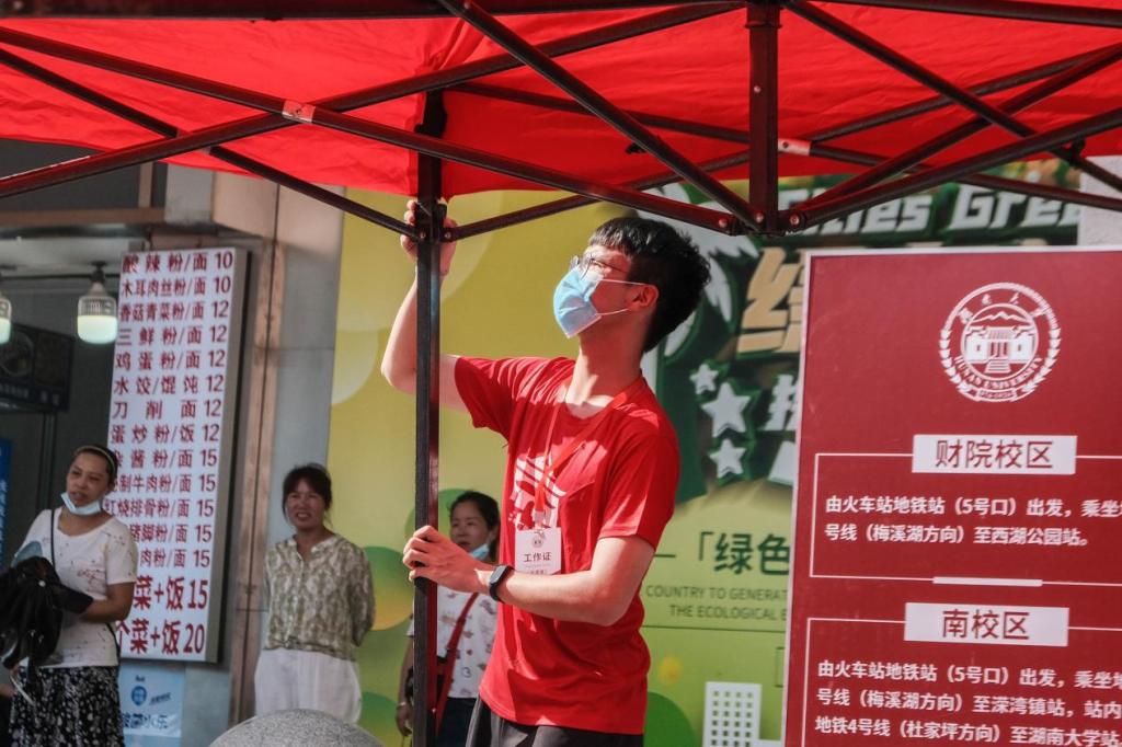 志愿者布置迎新站点
