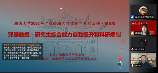 据悉,校研究生会联合各学院研究生会启动“我的湖大对你说”系列活动,邀请28位学术大师、青年导师、学术典型开讲导师预习课、榜样成长课、校史文化课,帮助2022级准研究生提前走进湖大、了解学术、做好准备,走好湖大学术科研第一步。