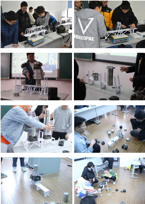B503和B507教室内同步举行。比赛过程中,评委老师们主要根据以下三个方面对同学们设计桥梁模型进行评分: