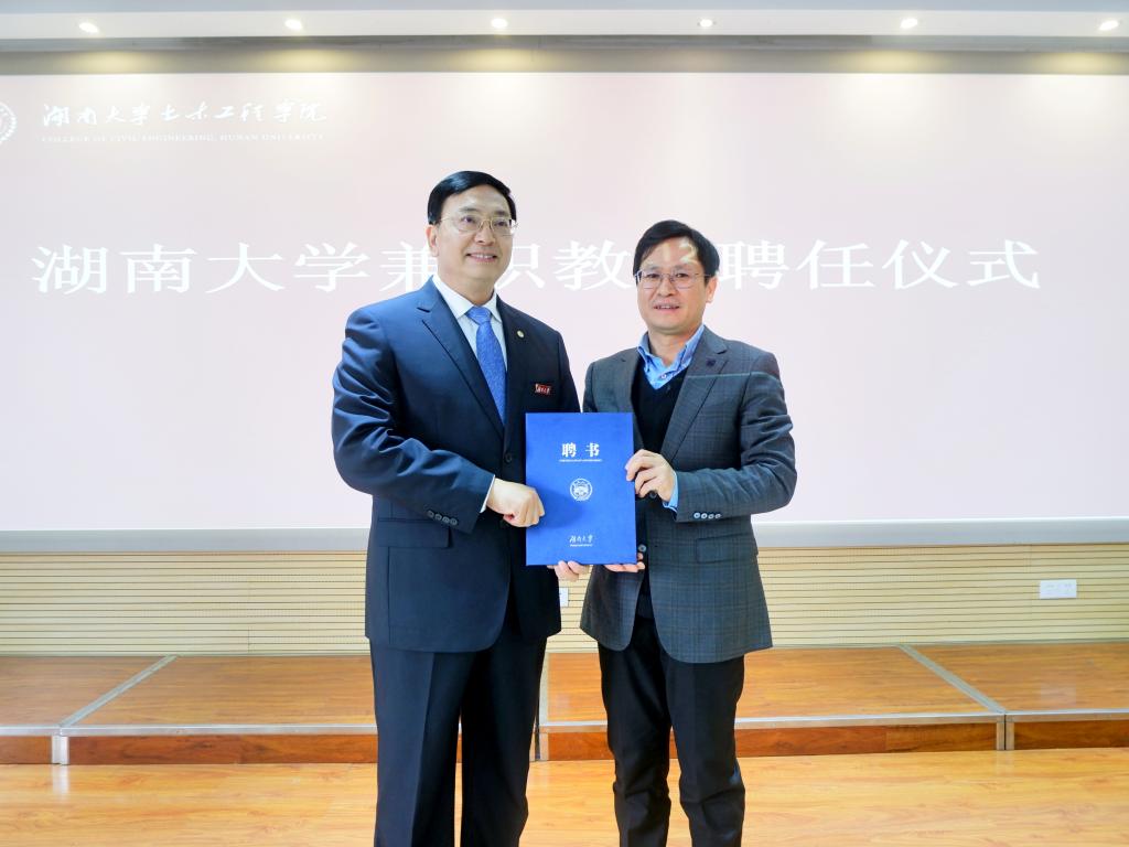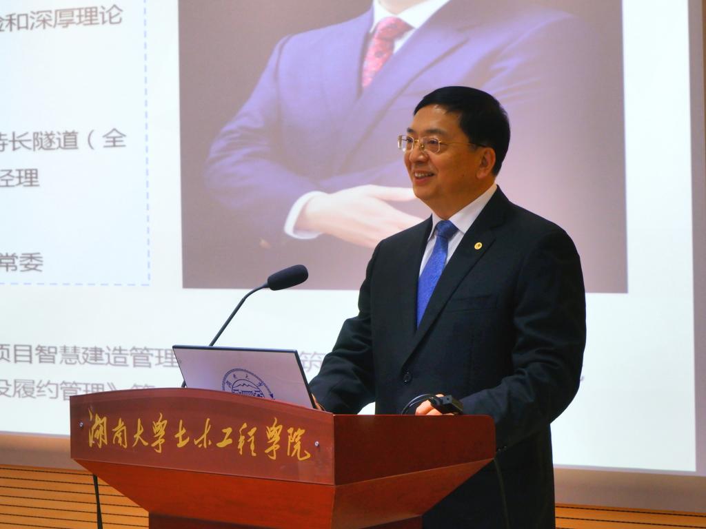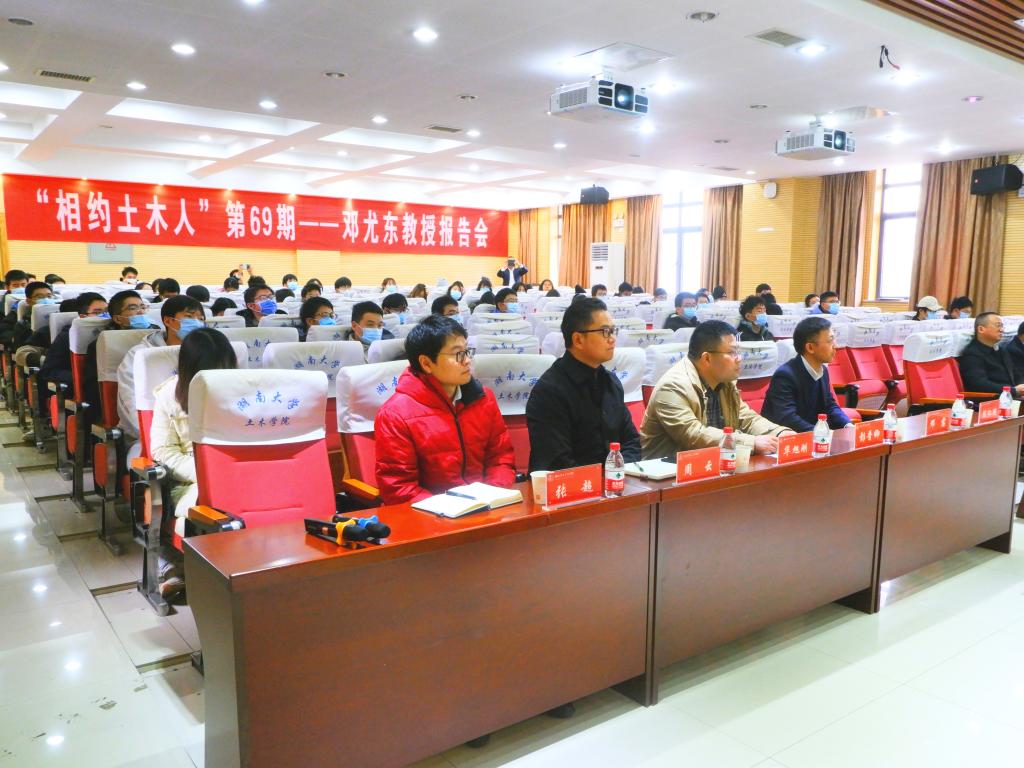 A212报告厅举行。校长助理陈仁朋为邓尤东颁发聘书、佩戴校徽,邓尤东作题为《谈持续卓越,赋能建筑行业高质量发展》的讲座。中建五局代表、KISSAV