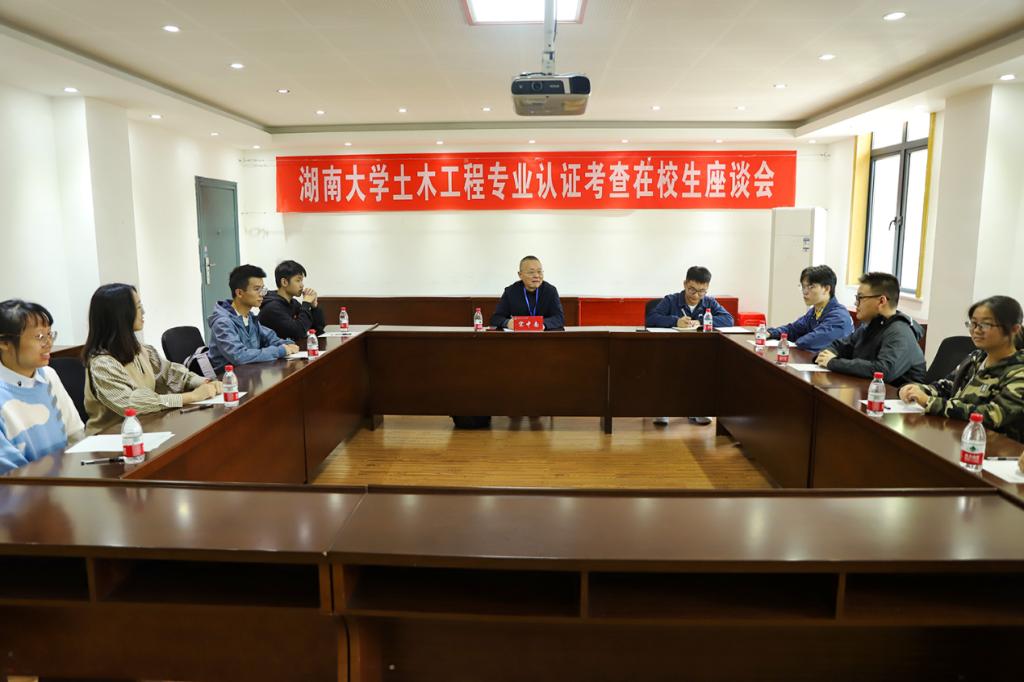 在为期3天的现场考查工作中,专家组对土木工程专业的办学情况进行了全方位、立体化、多维度的考查,走访了图书馆、岳麓书院、工训中心材料力学实验室、物理实验中心、工程制图机房、BIM信息化中心、工程测量实验室、教学资料室、建筑结构实验室、防灾实验室、桥梁实验室、风洞实验室、流体力学实验室、道路实验室、地基基础实验室、建筑材料实验室等教学场所和设施;旁听了《混凝土结构设计原理》、《结构力学》、《道路规划设计》、《装配式混凝土房屋结构设计》等课程的课堂教学;调阅了土木工程专业的教学资料和管理文件,包括培养方案、教学计划、课程教学大纲、试卷、毕业设计、课程设计、实习报告、实验报告等;访谈了学院管理人员代表、教师代表、用人单位代表、毕业生代表以及在校生代表等。