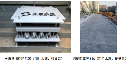 教师的科研成果:大桥采用了由陈政清院士团队研发的电涡流TMD阻尼器(总重25.6吨),以满足节假日高峰期行人通行的舒适性要求;采用了由邵旭东教授团队研发的薄层超高韧性混凝土(STC)轻型组合桥面结构(STC层厚仅2.5cm),增强了薄层铺装与主结构协调变形与防裂性,并提高钢梁的耐久性。