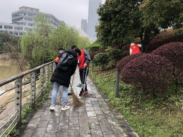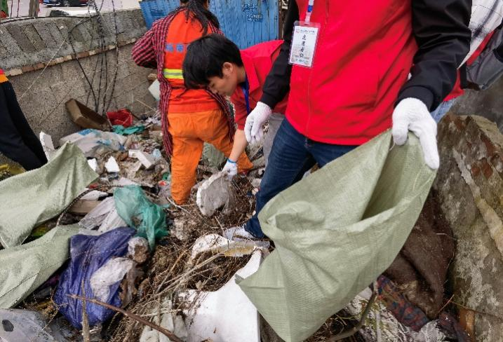 志愿服务活动第一站位于箭弓山社区。3月18日上午,在社区干部的带领下,志愿者们捡拾和清扫河堤两旁的垃圾,为保护河堤贡献自己的一份力量。
