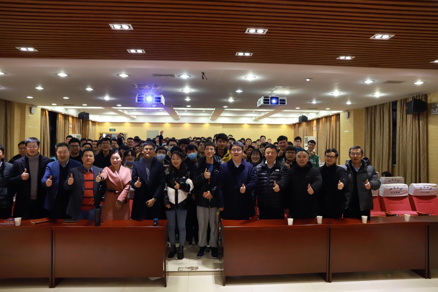 杜海龙就平南三桥项目卵石地层地连墙成槽、大体积混凝土防裂、缆索吊运安装系统、超大跨拱肋安装线形控制、管内混凝土灌注等施工重点难点问题进行了介绍,并结合个人的学习成长经历,从就业择业、职业规划、学习提升等方面与全体同学进行了分享和交流,寄语在座学子们博学笃志、掌握科学知识,自我拓展、练就过硬本领,知行合一、扎根中国大地。