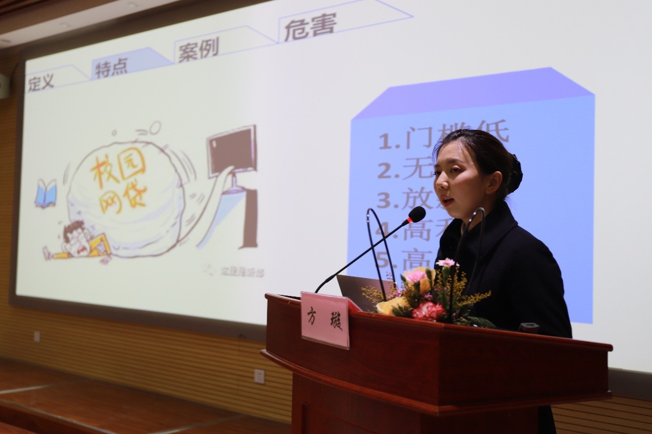 在如今各类校园贷产品层出不穷、鱼目混珠的环境下,该讲座旨在提高同学们的金融风险的警惕意识,以及为同学们普及一些基础金融知识。讲座开始之初,一个扫码抽奖的环节调动起了同学们的热情和积极性。接下来,方璇经理从校园贷的定义、特点、案例和危害为同学们进行了详细的介绍。并以一个KISSAV