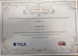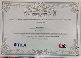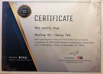 李念平教授指导,何梅玲,谭畅同学撰写的作品“Theoretical Analysis and Experimental Research on the Terminal of Radiating Air-Conditioning”获得了“2018世界暖通空调学生科技竞赛(HWSC)中国区选拔赛”暨第二届“天加杯”全国暖通空调学生科技竞赛二等奖。