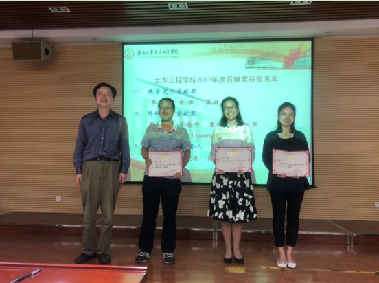 本次表彰设置了教学、科研、优秀管理服务三项突出贡献奖。其中,李洁、俞准、晏班夫三位教师获得年度教学突出贡献奖,邵旭东、李念平、张恒龙、徐军、Hyeon-Jong Hwang(黄铉宗)五位教师获得年度科研突出贡献奖,易笃韬、周铁英、彭薪羽三位教师获得年度优秀管理服务奖。