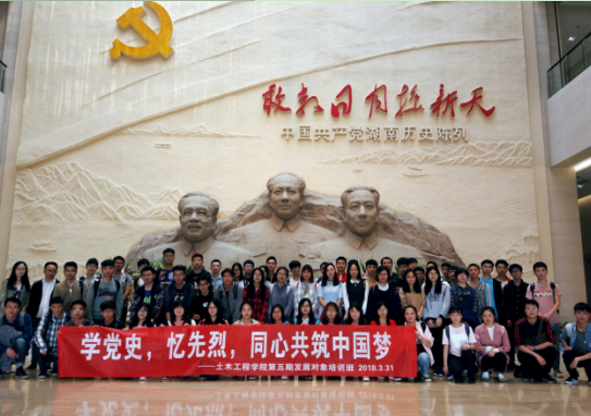 为回顾党的历史,缅怀革命先烈,全体成员参观了湖南省党史陈列馆。展厅共分为“开辟新天地”、“描绘新画卷”、“谱写新篇章”和“三湘群英谱”四个部分,分别展示了新民主主义革命、全面建设社会主义、改革开放三个历史时期湖南省的生动实践,以及以毛泽东为代表的湘籍和长期在湘工作的著名党史人物的光辉成就。陈列馆用一幅幅油画、一张张照片、一座座雕塑配合着讲解员的讲解,生动地展现了中国共产党艰难的奋斗历程,也激励着同学们继承先烈顽强拼搏的精神,积极投身社会主义的建设中。