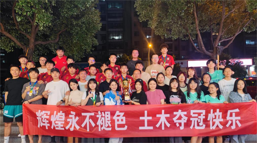 湖大土木院足球队由黄靓老师担任领队,王阳浩担任队长,张定方担任主教练,拥有教职工球员3人,研究生球员6人,本科生球员16人,经理3人。从小组赛到淘汰赛,他们输过,但从来没有丧失对成功的渴望,永远保持着昂扬的斗志和自信;他们赢过,但没有因为自满而丧失了谦逊。纵志成城,拧成一股绳,用团结铸就了属于土木院男足的第五冠。