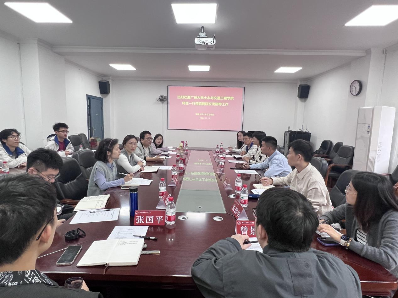 11月12日,广州大学土木与交通工程学院党委副书记肖逸一行来院调研交流,学院党委副书记曾欢欢及学工办辅导员参加交流活动。
