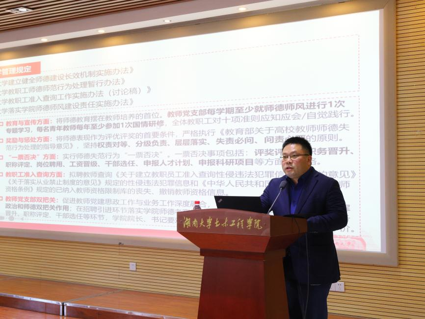 11月26日,学院召开师德师风专题学习暨工作部署会,学院党政领导班子组成员和全体教职工参加会议。会议由学院院长华旭刚主持。