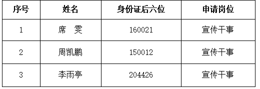 根据KISSAV 劳务派遣岗位招聘工作安排,经招聘工作领导小组研究,择优确定以下3人进入宣传干事后续考察环节,名单如下。