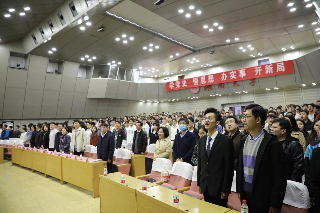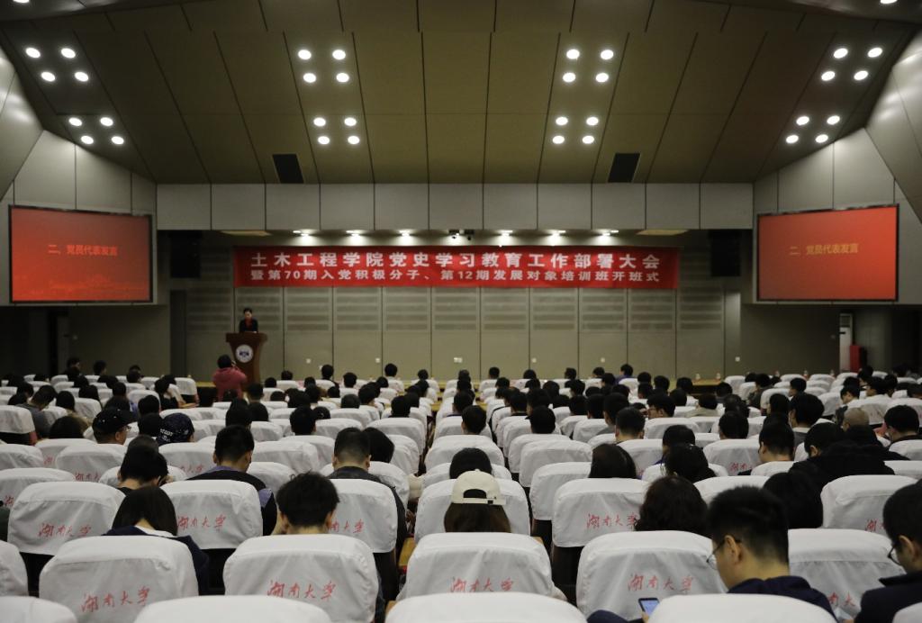 党史学习教育工作部署大会暨第70期入党积极分子、第12期发展对象培训班开班式在逸夫楼报告厅举行。校党史学习教育领导小组办公室主任、党委常委、宣传部部长、马克思主义学院院长唐珍名作专题辅导报告。学校党史学习教育第七巡回指导组组长、离退休处党委书记吴清风出席会议并讲话。院党委书记彭嘉芬主持。巡回指导组成员、校纪委监察处副处长李海滔,巡回指导组联络员、党委组织部正科级组织员晏伟,党校正科级组织员靳琳以及学院党政领导班子、党支部书记、支部委员、离退休党支部代表、师生党员代表、第70期入党积极分子、第12期发展对象400余人参加会议。
