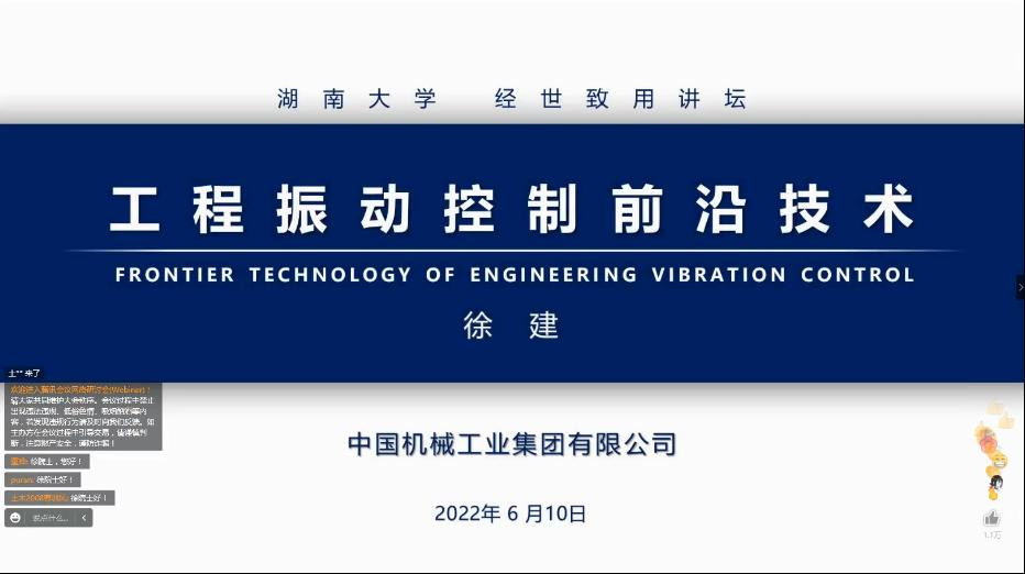 “经世致用讲坛”,给母校师生作了题为“工程振动控制前沿技术”的学术报告。中国工程院院士陈政清,副校长汪卫斌,校长助理陈仁朋等出席线上活动。