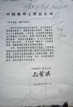 中国海外工程总公司还专门下文为校友陈听正请功,国家对外贸易经济合作部转发了陈听正主持多库公路工程的主要事迹。
