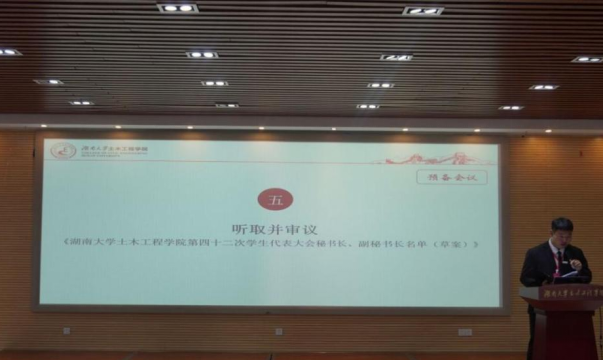 第四十二次学生代表大会落下帷幕,接下来,院学生会将在学院党委的坚强领导下,在院团委和校学生会的悉心指导下,团结带领学院学生奋力书写为中国式现代化挺膺担当的青春篇章,在实现自我、报效祖国、服务人民的广阔天地中唱响新时代湖大土木学子的青春最强音。